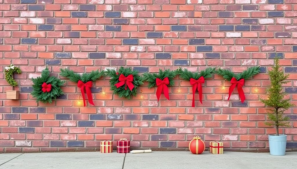 Artificial greens offer a clean option for long stretches of wall or large pillars. They do not release sap and can be secured with light clips. They also hold their color through the season, making them a strong choice for long displays.